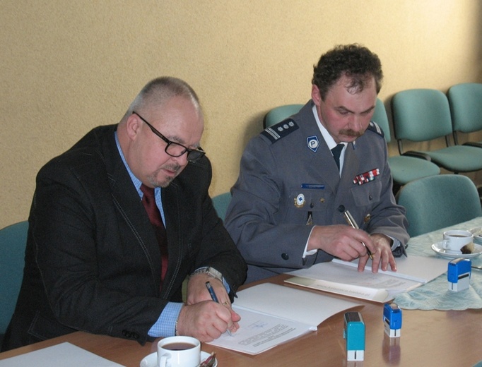 Inspektor Ireneusz Szwarga - komendant miejski Policji w Bielsku-Białej i Bogdan Kocurek - dyrektor Książnicy Beskidzkiej podpisali umowę o partnerstwie i współpracy na rzecz realizacji III edycji programu profilaktycznego pn. „Świat wokół nas – zagrożenia”.