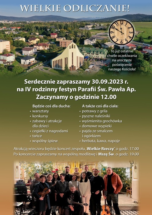 Gościem specjalnym festynu będzie znakomity zespół uwielbieniowy "Wielkie Rzeczy", spotykający się w parafii św. Michała Archanioła w Wilkowicach. Jego koncert zaplanowano na