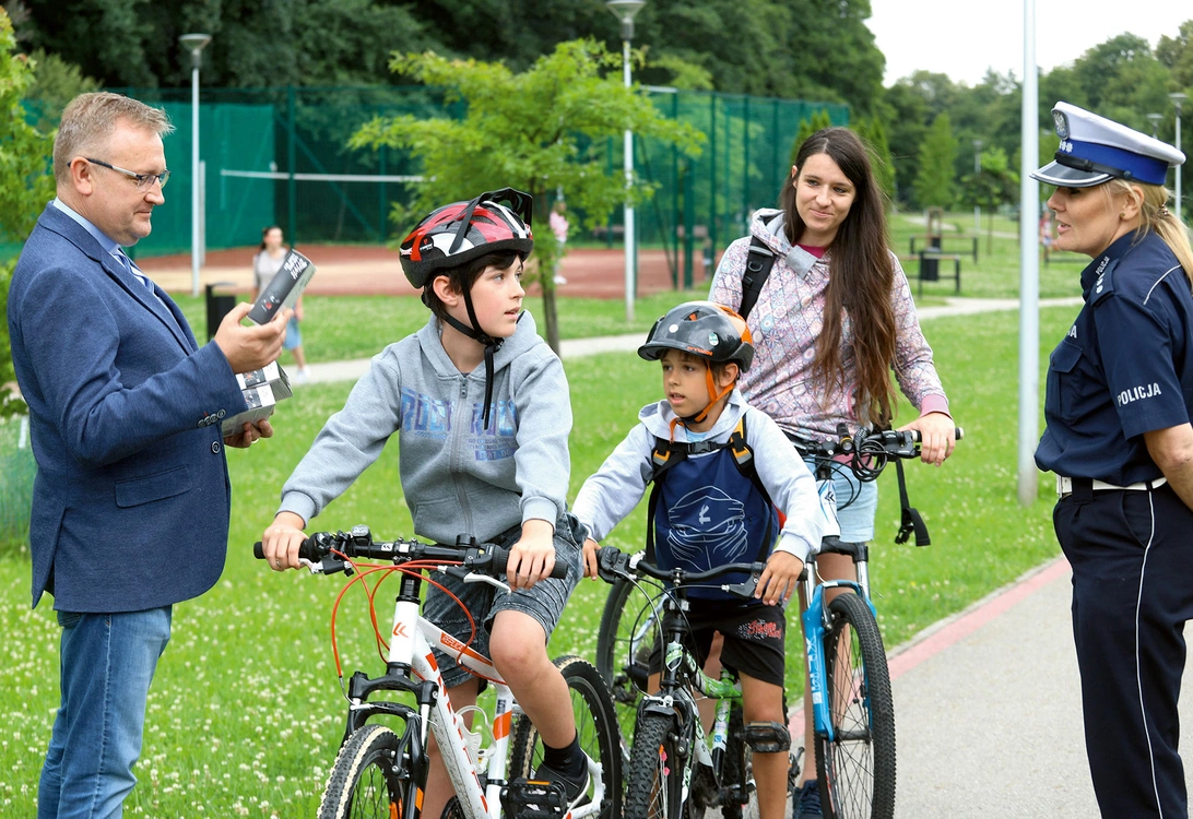 W nietypowym patrolu uczestniczyli przedstawiciele Komendy Wojewódzkiej Policji z Katowic oraz diecezjalnej Caritas. – To już kolejna akcja na rzecz bezpieczeństwa osób poruszających się po naszych drogach. Od lat uczestniczyliśmy w inicjatywach propagujących noszenie przez pieszych odblasków, które rozdawane były w kościołach. W tym roku przy współpracy z Caritas Polska przygotowaliśmy 1500 kompletów oświetlenia dla rowerzystów i właśnie pierwsze osoby je otrzymują. Rozpoczął się letni sezon, wielu ludzi wyrusza na rowerowe wycieczki czy jeździ rowerem do pracy, a trzeba, żeby byli lepiej widoczni na drodze i bardziej bezpieczni – tłumaczył ks. Robert Kurpios, dyrektor diecezjalnej Caritas, a jego zastępca, Grzegorz Giercuszkiewicz, pomagał umieścić lampki we właściwych miejscach.