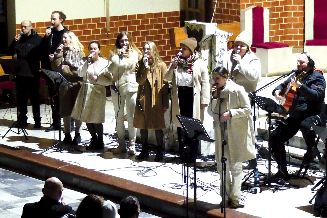 Do rodzinnego kolędowania zaprosił tu zespół Projekt Fausystem – wspólnota muzyków, znanych z wielu przedsięwzięć ewangelizacyjnych. Nie tylko zaśpiewali i zagrali znane piosenki o Bożym Narodzeniu oraz autorskie kompozycje lidera wspólnoty Piotra Mireckiego, ale zachęcili do wspólnego śpiewu tradycyjnych kolęd w niecodziennych aranżacjach. Żadnych oporów nie mieli najmłodsi, którzy odważnie pobiegli do muzyków, by poprowadzić z nimi kolędowanie.