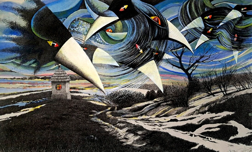 Piotr Wisła, Księgi mądrościowe i nowe wspaniałe światy, tusz, papier, 2025.Jak przyznaje, w dzisiejszym świecie sztuki ważny jest sam fakt, że tematykę sakralną podjęło szersze grono twórców. - To cenne świadectwo, zwłaszcza obecnie, kiedy sztuka sakralna w kulturze współczesnej stała się wielkim nieobecnym. Może nie wszyscy to zauważają, ale skutki tego stają się coraz bardziej destabilizujące. Wszak szeroko pojęta twórczość ma istotny wpływ na nasze emocje, wrażliwość i głębię wyobraźni, ale również na racjonalne myślenie. Brak (znikomość) „profesjonalnej” sztuki religijnej to objaw olbrzymiego zeświecczenia i zbanalizowania naszej kultury. Ograniczamy się do tego, co tu i teraz, szybko i wygodnie, bez wysiłku, powierzchownie i ekscytująco, do nowinek i błyskotek. Dlatego każde zatrzymanie się, wyciszenie, jakaś forma refleksji są niezwykle cenne, wspomagają nasze kroczenie drogami refleksji i duchowości - wyjaśnia kurator wystawy.