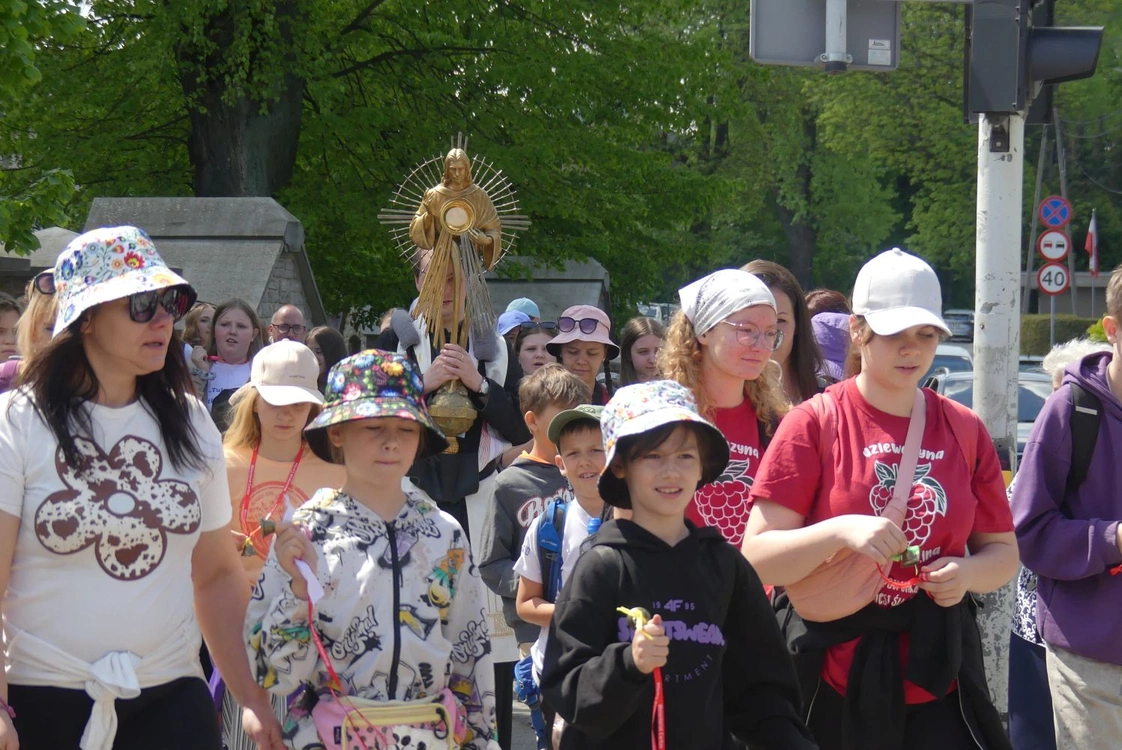 Po Mszy św. dzieci z wręczonymi im małymi dzwoneczkami, otoczyły ks. Michała Styłę, który jako pierwszy poniósł Najświętszy Sakrament w łagiewnickiej monstrancji i poprowadziły go na czoło pielgrzymki. Na poszczególnych odcinkach pielgrzymowania Jezusa poniosą kapłani ze wszystkich grup, a towarzyszyć będzie im asysta dzieci z dzwoneczkami. Natomiast pielgrzymi będą nieśli relikwiarz bł. rodziny Ulmów, użyczony przez ks. Piotra Pokojnikowa, proboszcza parafii św. Marcina w Radziechowach. Od października ub.r. Ulmowie w swoich relikwiach odwiedzają tu wszystkie rodziny, które wyrażą chęć spotkania się przy nich na modlitwie w swoich domach.